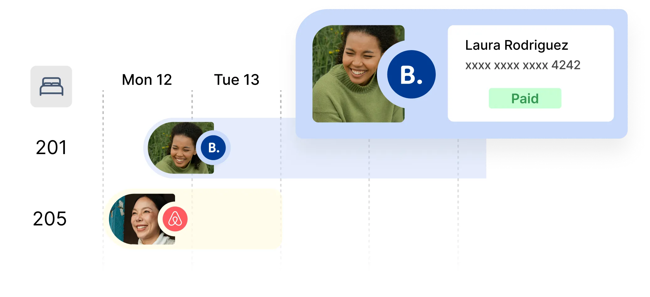 Manage every reservation from OTAs, your website, and direct calls in one simple calendar. No more double bookings.
