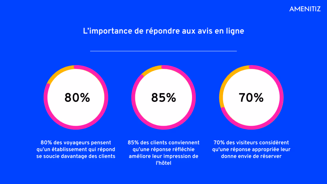 - 80% des voyageurs pensent qu'un établissement qui répond se soucie davantage des clients