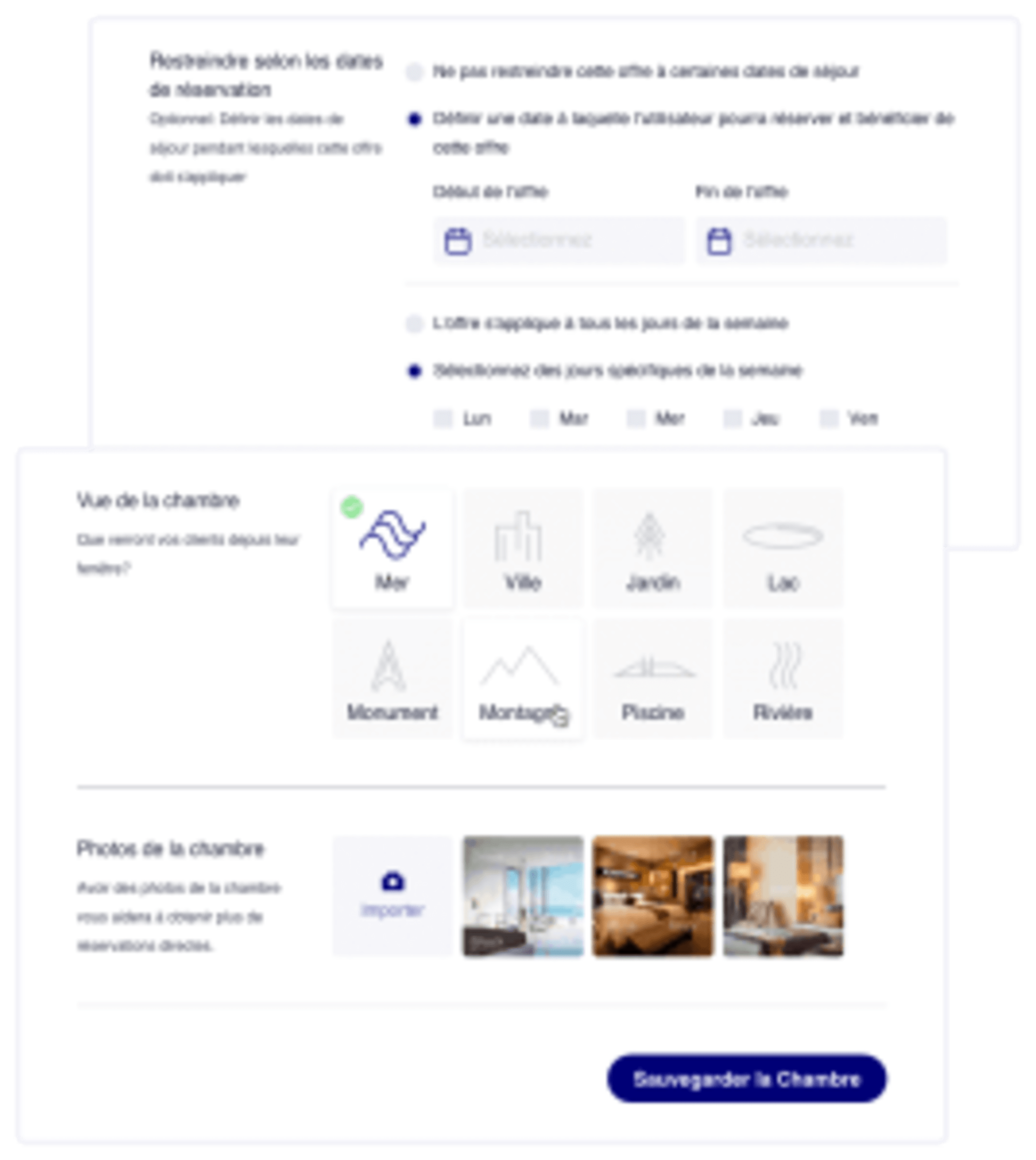 Vous pourrez par ailleurs gérer vos réservations, vos disponibilités et vos prix selon les périodes et les jours de la semaine. Tout est 100 % personnalisable, vous pourrez aussi bien upgrader vos ventes en proposant des extras que créer des offres spéciales quand vous le souhaitez.