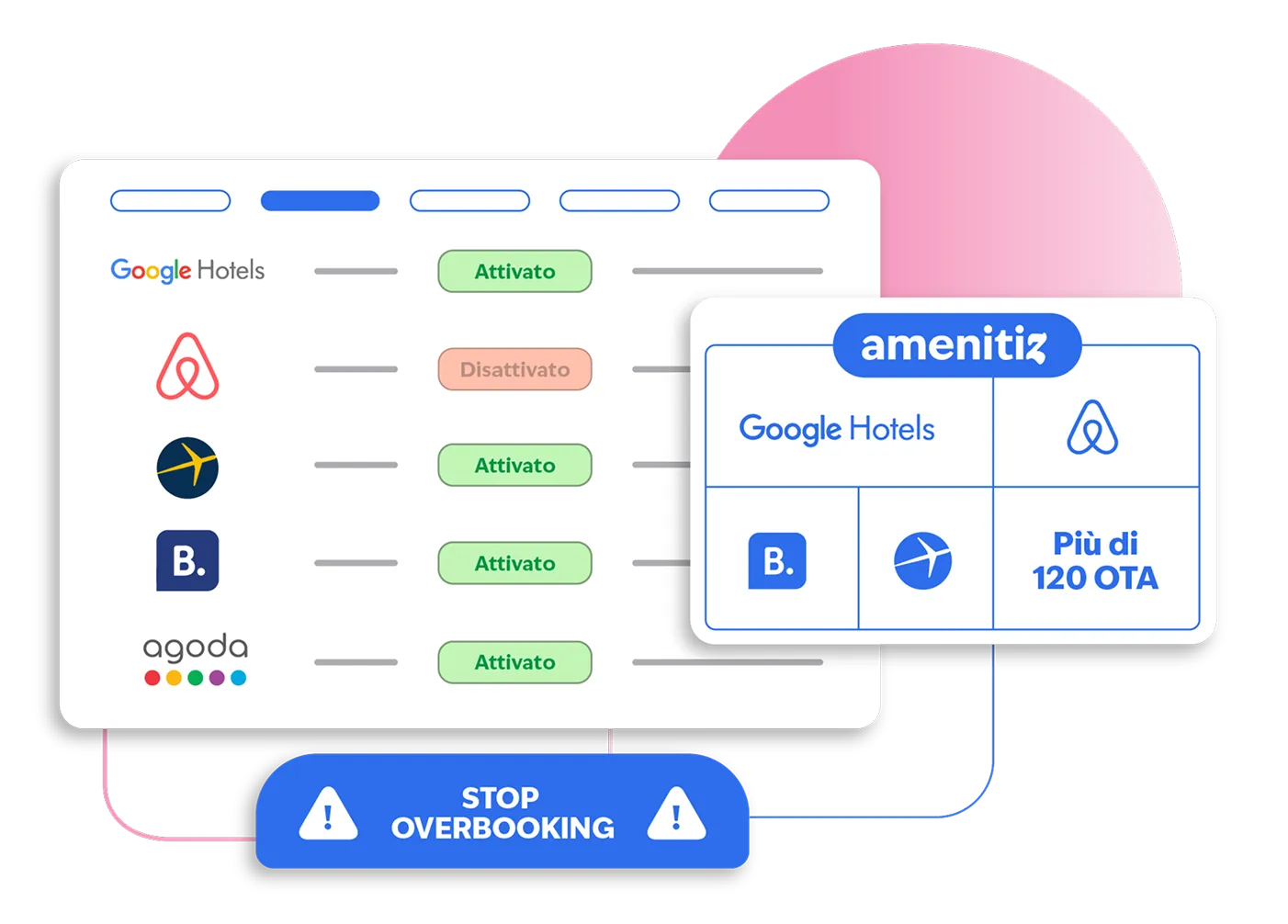 Amenitiz collega la tua struttura a tutte le principali piattaforme di viaggio e agli strumenti di Google, aumentando la visibilità e la fiducia dei viaggiatori.