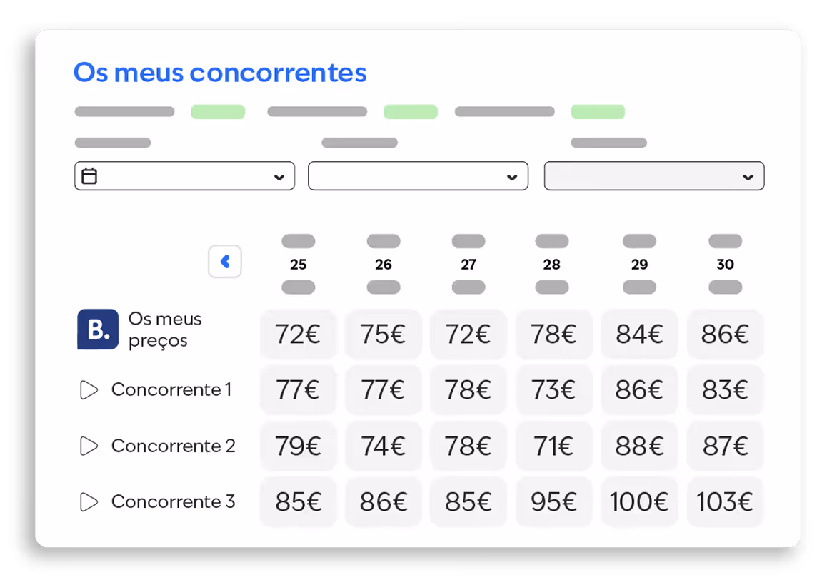 Em primeiro lugar, analisamos os seus dados (ocupação, lead time de reserva e preços) e depois olhamos para os preços do seu concorrente, bem como se eles têm disponibilidade ou não para tarifas específicas.
