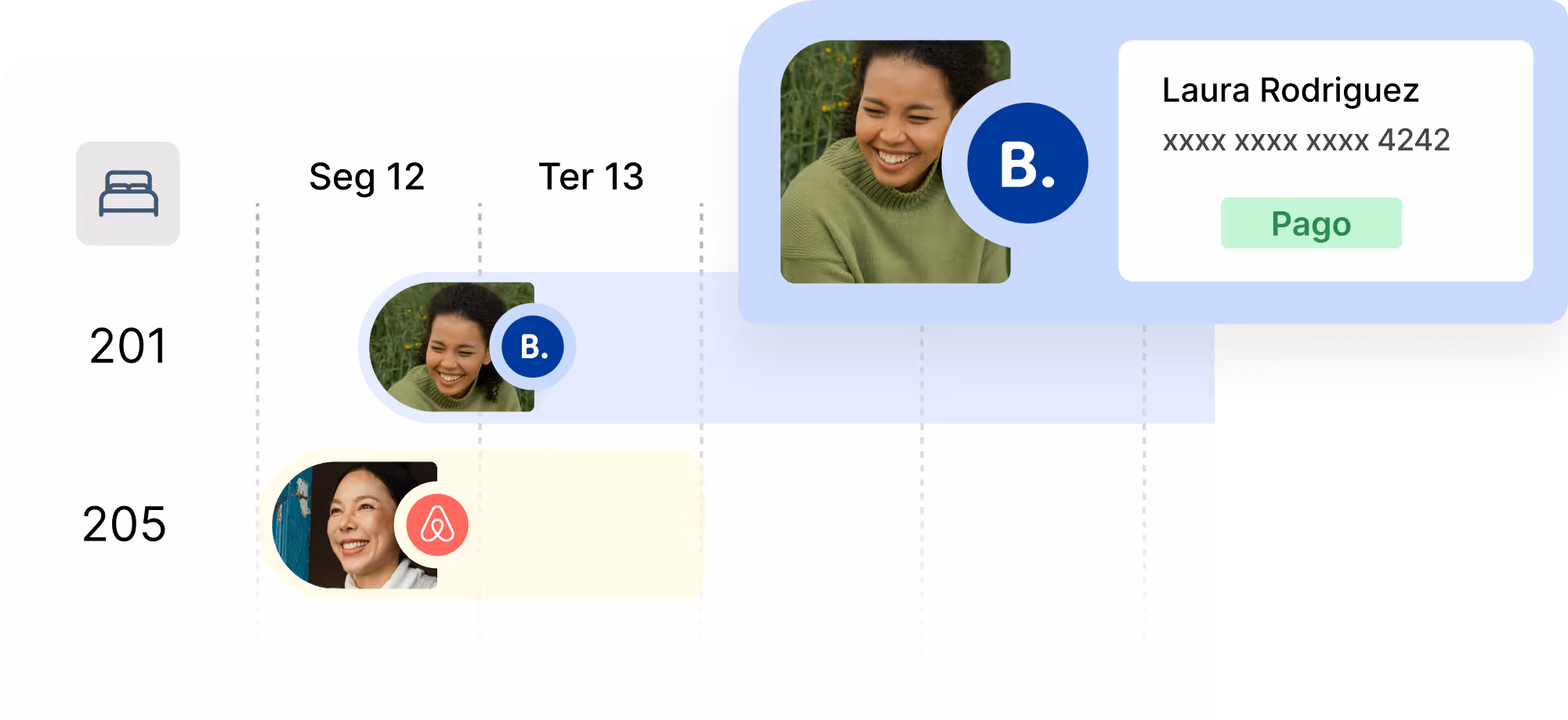 Gere todas as tuas reservas de OTAs, seu site e chamadas diretas num calendário simples. Não há mais reservas duplas.