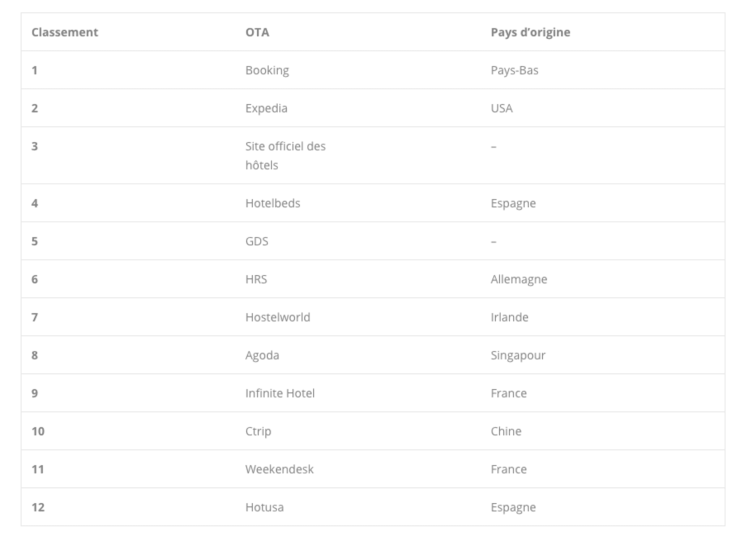 Comme le montre le classement, les OTA ont t créés aux quatre coins du monde. Ainsi, les habitudes de consommation des voyageurs du monde entier ont convergé vers la réservation en ligne. A titre d'exemple, la part des français réservant via une agence de voyage en ligne est passée de 51% 77% en 10 ans selon une étude menée par eDreams. Les propritaires dtablissements ont donc besoin de s'adapter aux nouvelles attentes des voyageurs en proposant leurs offres en ligne.
